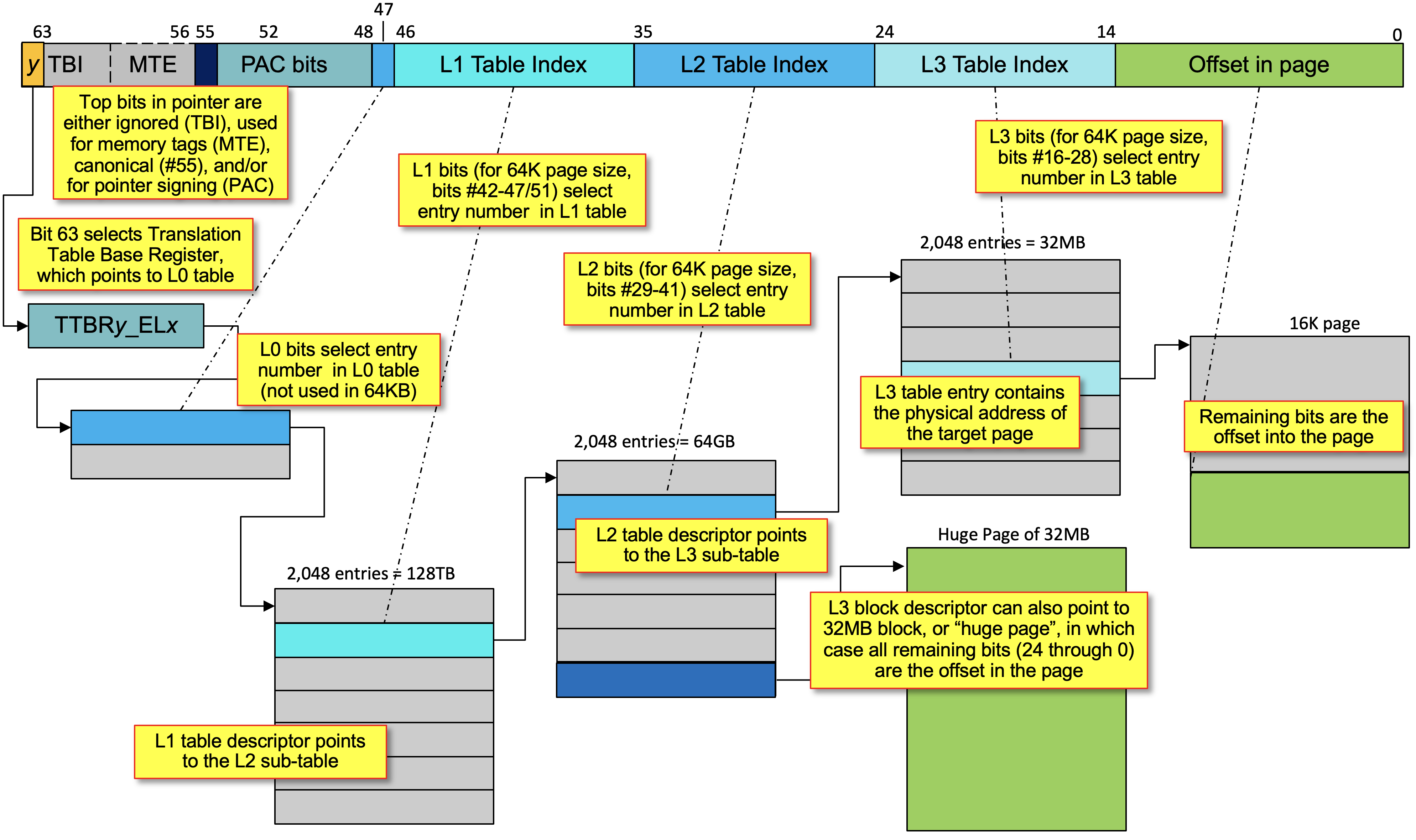 Figure 13/2-25: Bits 36-46 for L1 (not 48), though that's obvious from the diagram). Also trying to catch both 16K and 64K proved confusing, so I fixed the diagram to clarify as follows: